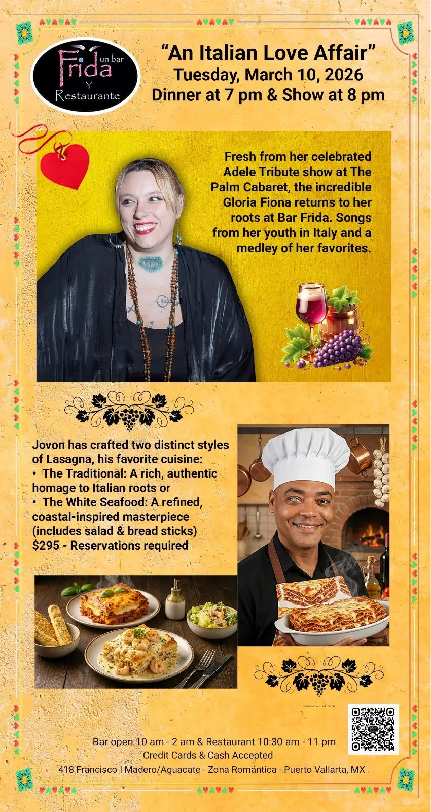 Welcome to Bar Frida y Restaurante, your friendly neighborhood bar in the heart of Puerto Vallarta's Zona Romantica. Since 2001, we've been more than just a bar; we're a tradition. We were founded on a simple vision: to be a genuinely welcoming space for friends, family, and neighbors to gather. That vision is captured in our core promise to you, the philosophy that builds our community: "Be Nice or Leave."